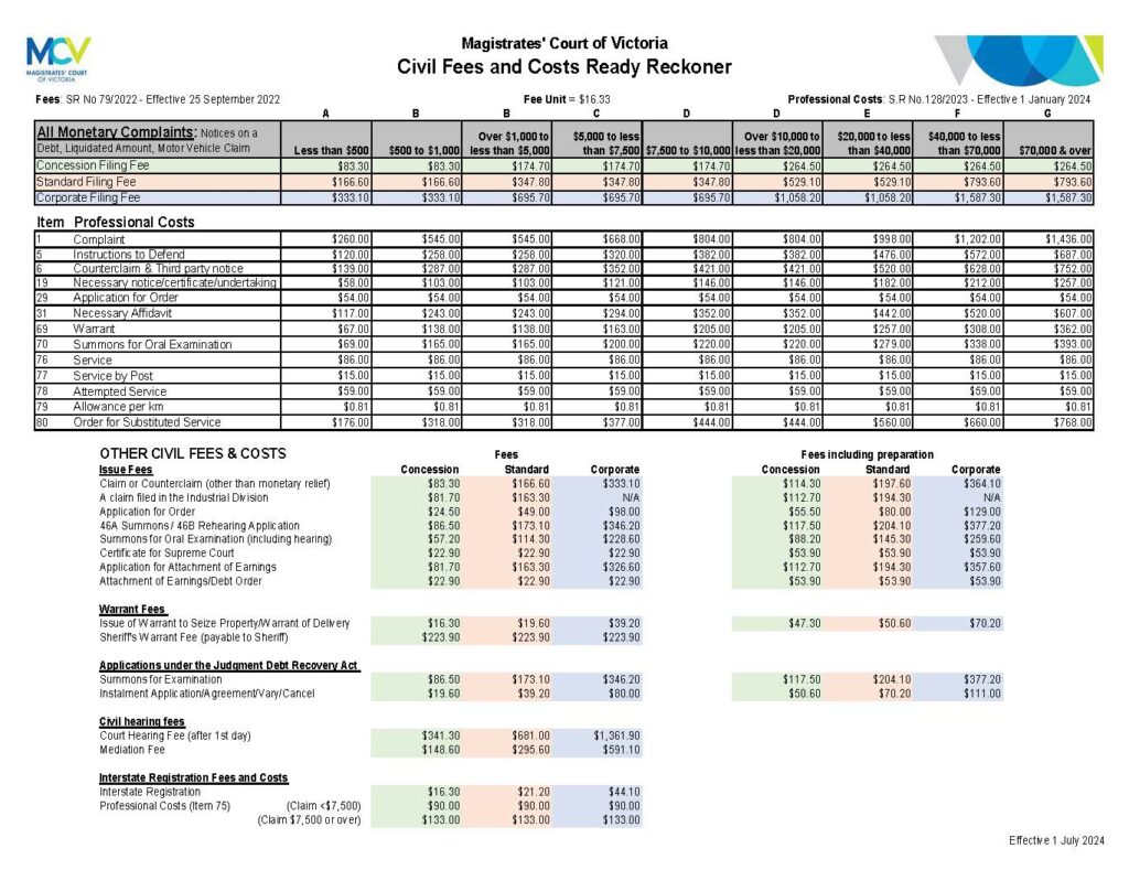 Vic Collect’s commission fee is not carried over into Court proceedings, UNLESS you have a costs clause allowing your commission to be added into the Claim amount. This means that you only pay the Court costs going forward and will not be charged any commission if a recovery is made. If you do have a costs clause, then your debt and the commission fee form the claim amount to be filed in Court.