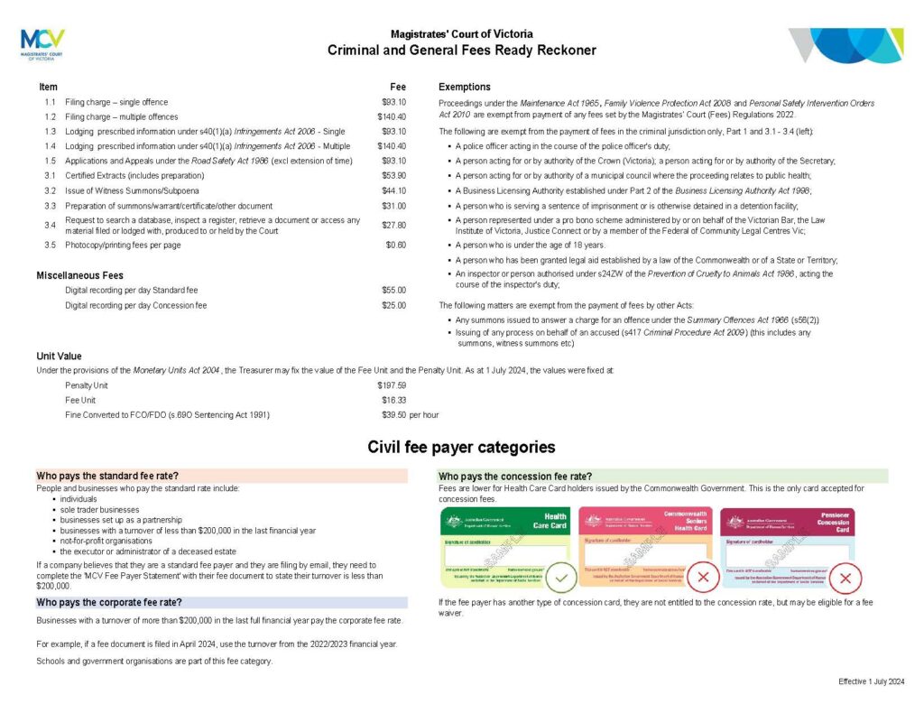 Fees for an Application to the Victorian Civil and Administrative Tribunal.